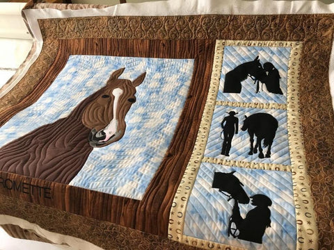 2016 - June - Pohlar Fabrics Row by Row - Liberty IN, Stop by and pick up your row, Megan had the horses laser cut with fusible backing for her customers.