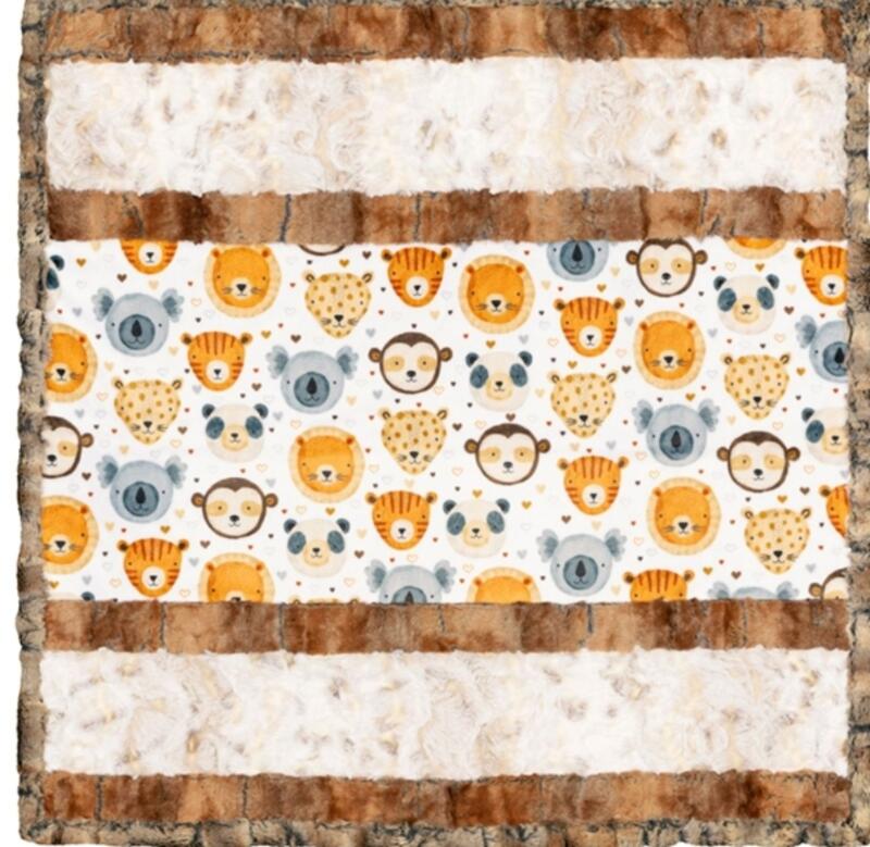 You lookin' at me? This animal-themed Cuddle® quilt will have your little one dreaming of a safari adventure as they bundle up for naptime. Affectionately called Wee One Cuddle® Kit Furever Friends, this kit makes a perfect complement for little girls' or boys' rooms and includes our Head's Up Digital Cuddle® Natural, Luxe Cuddle® Rusty Fox Copper/Brick, Luxe Cuddle® Snowy Owl Natural and Luxe Cuddle® Red Fox Amber/Taupe fabrics. This Wee Ones Cuddle® kit quilt is approximately 27" by 27" and includes seven pre-cut 5" strips, the free pattern and fabrics for the backing and binding.